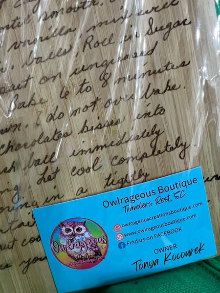 Handwritten recipe cutting boards now available. Only $35!! 15x7.